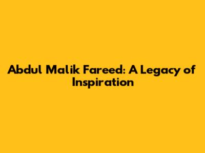 Abdul Malik Fareed: A Legacy Of Inspiration