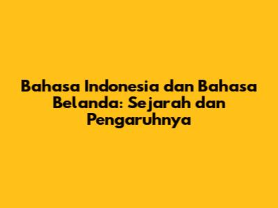 Pengaruh Bahasa Belanda pada Bahasa Indonesia
