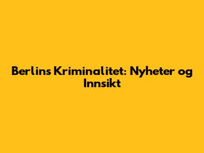 Berlins Kriminalitet: Nyheter Og Innsikt