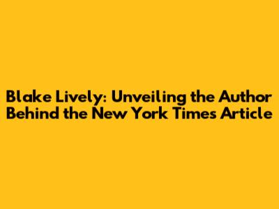 Blake Lively: Unveiling The Author Behind The New York Times Article