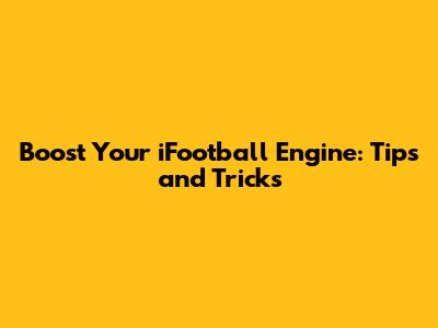 Boost Your IFootball Engine: Tips And Tricks