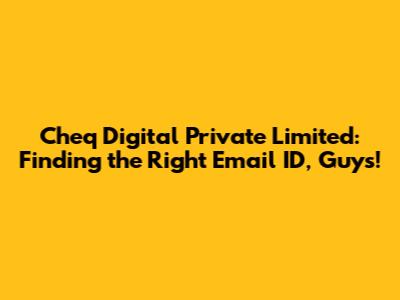 Hey everyone! So, you're looking for the Cheq Digital Private Limited email ID, huh? You've landed in the right spot! In today's super-fast digital world, getting in touch with companies quickly and efficiently is key, right? Whether you're a potential client, a job seeker, a curious investor, or just someone who needs to reach out for a specific reason, knowing the correct contact information can save you a ton of time and hassle. We're going to dive deep into how you can find that elusive email address for Cheq Digital Private Limited, and some super important tips on what to do once you have it. Let's get this digital party started!