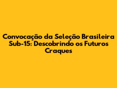 Convocação Da Seleção Sub-15: Talentos Do Futebol Brasileiro