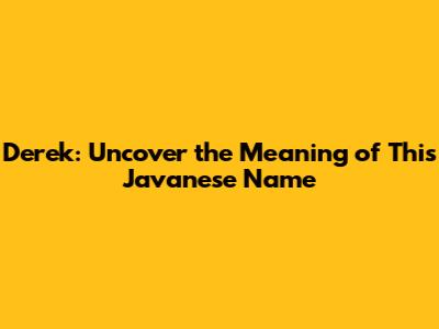 Derek: Uncover The Meaning Of This Javanese Name