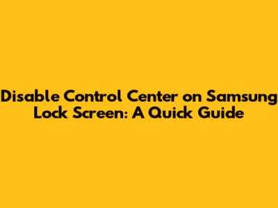 Disable Control Center On Samsung Lock Screen: A Quick Guide