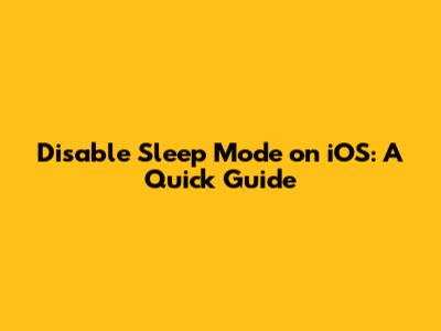 Disable Sleep Mode On IOS: A Quick Guide