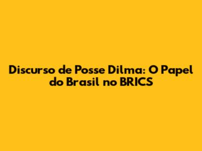 Discurso De Posse Dilma: O Papel Do Brasil No BRICS