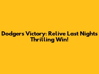 Dodgers Victory: Relive Last Night's Thrilling Win!