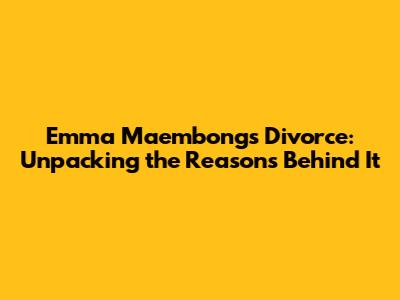 Emma Maembong's Divorce: Unpacking The Reasons Behind It