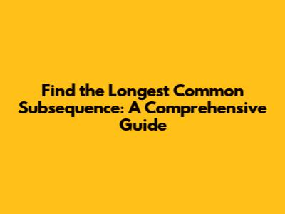 Find The Longest Common Subsequence: A Comprehensive Guide