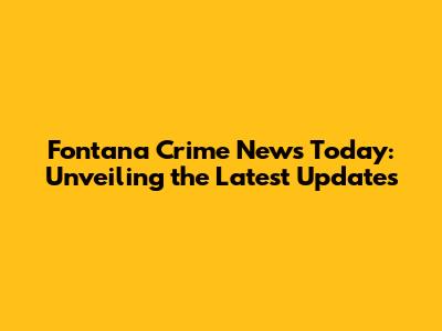 Fontana Crime News Today: Updates & Insights
