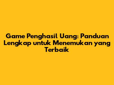 Game Penghasil Uang: Pilihan Terbaik Tanpa Tipu-Tipu!
