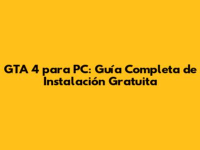 GTA 4 Para PC: Guía Completa De Instalación Gratuita