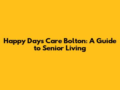Hey everyone! Are you looking for top-notch care for your loved ones in Bolton? Well, buckle up, because we're diving deep into ziHappy Days Care Bolton, a place that's making waves in the elderly care scene. This isn't just another care home; it's a community dedicated to providing exceptional support and creating a warm, inviting atmosphere for seniors. We'll be exploring everything from the services offered to the overall vibe of the place. So, let's get started and see what makes Happy Days Care in Bolton stand out from the crowd, and what makes it special for seniors.