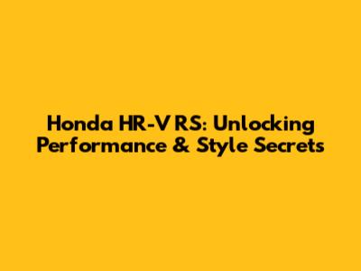 Honda HR-V RS: Unlocking Performance & Style Secrets