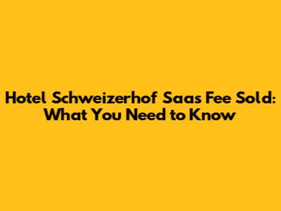 Hotel Schweizerhof Saas Fee Sold: What You Need To Know