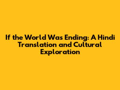 In Hindi literature, movies, and music, the theme of the world ending is often explored through various lensesโspiritual, romantic, and apocalyptic. Knowing the translation of "if the world was ending" can help you appreciate these works on a deeper level. You might come across this phrase or similar expressions in songs about love and loss, in philosophical poems, or in dramatic movie scenes.