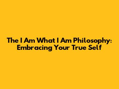 The 'I Am What I Am' Philosophy: Embracing Your True Self