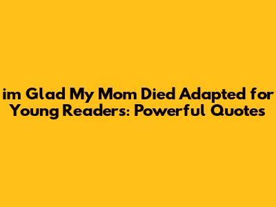 Hey guys! So, we've got this incredible book, "i'm Glad My Mom Died" by Jennette McCurdy, which has been totally adapted for young readers. This isn't just any book; it's a raw, honest, and super important look at a complex relationship between a child and their parent, and the journey of healing that follows. For young readers, this adaptation offers a way to connect with powerful themes of resilience, self-discovery, and the messy, beautiful process of growing up, even when things are tough. It tackles some heavy stuff, yeah, but it does it in a way that's accessible and incredibly validating for teens navigating their own challenges. We're going to dive into some of the most impactful quotes from this adapted version that really capture the essence of Jennette's story and the strength it takes to find your own voice.