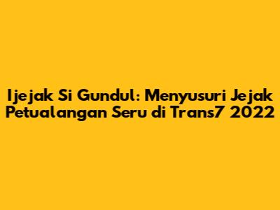 Ijejak Si Gundul adalah acara televisi yang sangat digemari di Indonesia, khususnya di kalangan anak-anak dan keluarga. Tayang di Trans7, acara ini menyajikan petualangan seru dan edukatif yang dibawakan oleh karakter utama yang dikenal dengan sebutan "Si Gundul." Tahun 2022 menjadi tahun yang menarik dengan hadirnya episode-episode terbaru yang menyajikan berbagai kegiatan menarik, pelajaran berharga, serta pengenalan budaya dan lingkungan. Artikel ini akan membahas secara mendalam mengenai Ijejak Si Gundul Trans7 terbaru 2022, termasuk tema-tema yang diangkat, karakter-karakter yang terlibat, serta dampak positif yang diberikan kepada penonton.