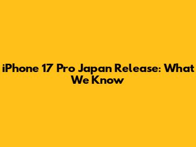 IPhone 17 Pro Japan Release: What We Know