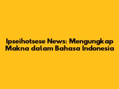 Ipseihotsese News: Apa Artinya Dalam Bahasa Indonesia?