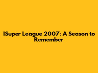 ISuper League 2007: A Look Back At The Thrilling Season