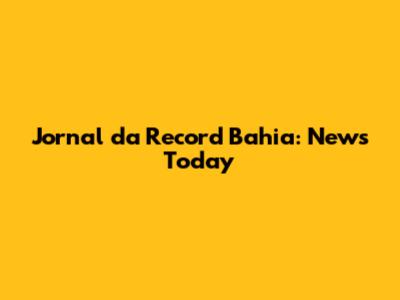 Jornal Da Record Bahia: News Today