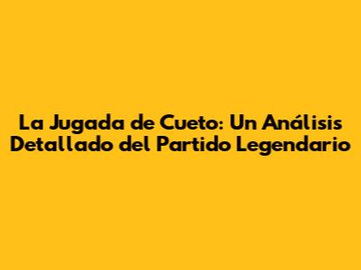 • ¿Cómo influyó la jugada en la carrera de Cueto? La jugada consolidó a Cueto como una leyenda del fútbol peruano, elevando su reconocimiento y prestigio a nivel nacional e internacional.