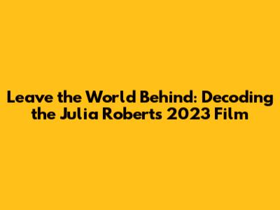 Hey everyone! Let's dive deep into the thrilling world of 'Leave the World Behind', the 2023 movie starring none other than Julia Roberts. This film is more than just a movie; it's a suspenseful ride that will keep you on the edge of your seat. We're going to break down everything from the gripping plot to the stellar performances and why it's a must-watch. So, grab some popcorn, settle in, and let's unravel the mysteries of this cinematic masterpiece!