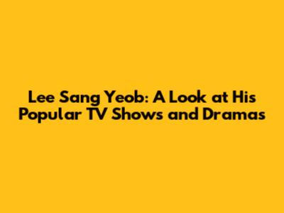 Lee Sang Yeob: Popular TV Shows And Dramas