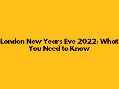 London New Year's Eve 2022: What You Need To Know
