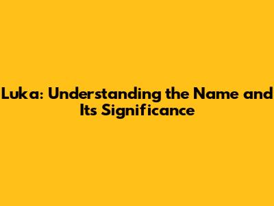 Luka: Understanding The Name And Its Significance