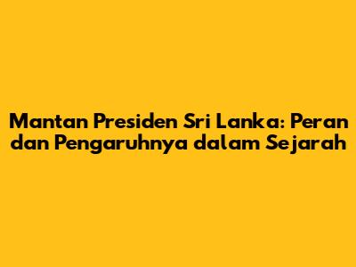 Mantan Presiden Sri Lanka: Siapa Saja Dan Apa Peran Mereka?