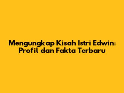 Mengungkap Kisah Istri Edwin: Profil Dan Fakta Terbaru