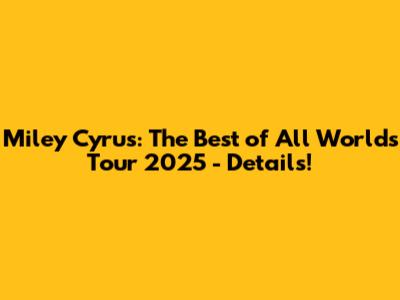 Hey guys! Are you ready for some exciting news? Miley Cyrus is hitting the road again in 2025 with her "Best of All Worlds Tour," and trust me, you do not want to miss this! In this article, we’re diving deep into everything you need to know about the tour, from possible dates and locations to what you can expect from the performances. Get ready to mark your calendars and start planning because this is going to be epic!