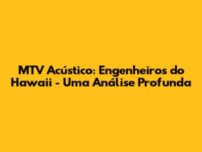 MTV Acústico: Engenheiros Do Hawaii - Uma Análise Profunda