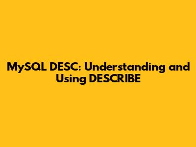Hey guys! So, you’re diving into the world of MySQL, and you’ve stumbled upon this DESC or DESCRIBE command. What’s the deal with it? Well, let me tell you, it’s a super handy tool in your MySQL arsenal. Essentially, DESCRIBE in MySQL is your go-to command when you need to get a quick overview of a table's structure. Think of it like this: you walk into a room and want to know what's inside without rummaging through every drawer. DESCRIBE gives you that bird's-eye view of your table. It tells you the names of the columns, what kind of data each column can hold (like text, numbers, dates), whether those columns can be empty (NULL), if they’re part of a key (like a primary key or foreign key), and even provides a default value if one is set. It’s not just about seeing the columns; it’s about understanding the blueprint of your data storage. This command is incredibly useful for anyone working with databases, from beginners trying to grasp table layouts to seasoned developers who need a quick reminder of a complex schema. Knowing the structure of your tables is fundamental for writing efficient queries, performing data manipulation, and ensuring the integrity of your database. Without DESCRIBE, you’d often have to dig through lengthy SQL scripts or documentation, which can be time-consuming and prone to errors. This command streamlines that process, making database management a whole lot smoother.