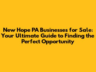 Hey guys! Are you dreaming of owning your own business? Maybe you're looking for a fresh start or eager to expand your entrepreneurial horizons. If you're eyeing the charming town of New Hope, Pennsylvania, you're in the right place! New Hope is a vibrant community with a thriving economy, making it a hotspot for business ventures. Let's dive deep into the world of businesses for sale in New Hope PA, exploring what makes this town so appealing and how you can find the perfect opportunity.