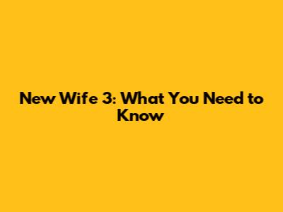 New Wife 3: What You Need To Know
