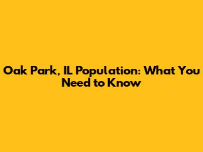 Oak Park, IL Population: What You Need To Know