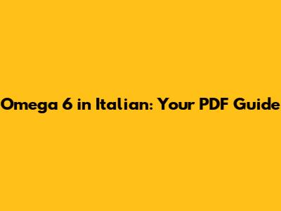 Omega 6 In Italian: Your PDF Guide