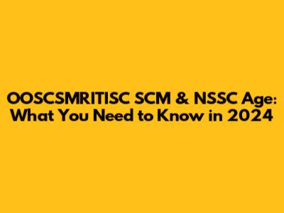 OOSCSMRITISC SCM & NSSC Age: What You Need To Know In 2024