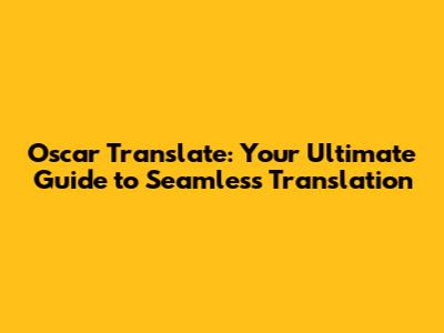 Oscar Translate: Your Ultimate Guide To Seamless Translation