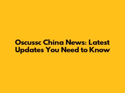 Oscussc China News: Latest Updates You Need To Know