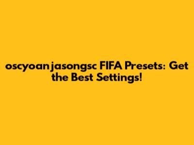 Oscyoanjasongsc FIFA Presets: Get The Best Settings!