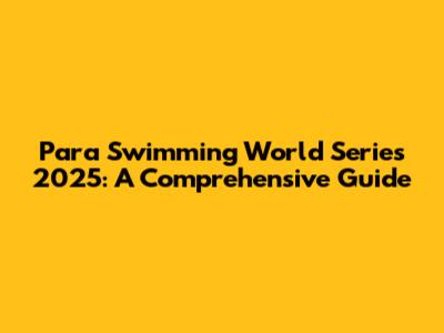 Para Swimming World Series 2025: Everything You Need To Know