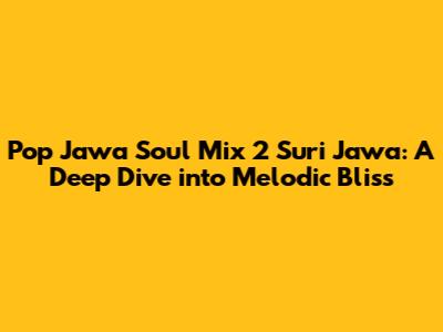 Hey guys! Get ready to groove because we're diving headfirst into the mesmerizing world of Pop Jawa Soul Mix 2 Suri Jawa. This isn't just music; it's an experience, a journey through the heart and soul of Javanese music, blended seamlessly with modern pop sensibilities. If you're looking for something unique, something that resonates with both tradition and contemporary vibes, then buckle up! We're about to explore what makes this mix so special, why it's capturing hearts, and where you can get your fix. So, grab your headphones, relax, and let’s get started with this musical adventure!