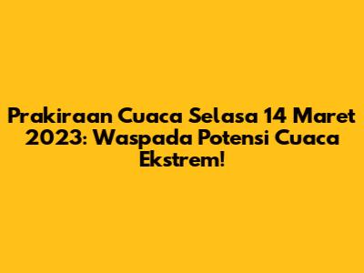 Guys, prakiraan cuaca untuk hari Selasa, 14 Maret 2023, menunjukkan adanya potensi cuaca ekstrem di beberapa wilayah Indonesia. BMKG telah memberikan peringatan dini, jadi penting bagi kita semua untuk tetap waspada dan siap siaga.