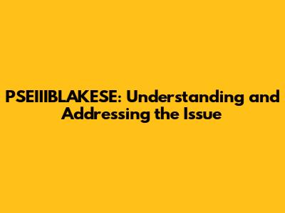 PSEIIIBLAKESE: Understanding And Addressing The Issue